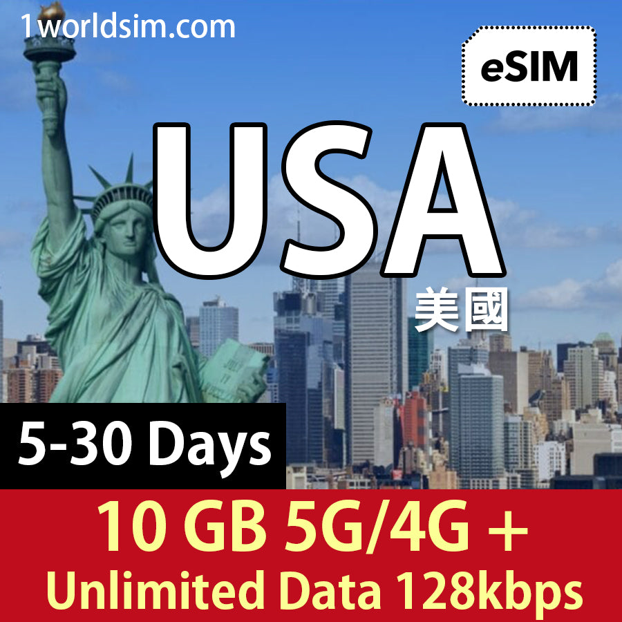 【US 5G Travel eSIM】1 GB-30GB High-Speed Data + Unlimited Data (T-Mobile Network)