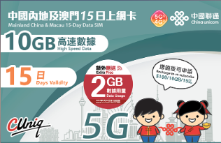 【聯通eSIM】內地及澳門 15日 9GB上網卡 其後降速無限流量