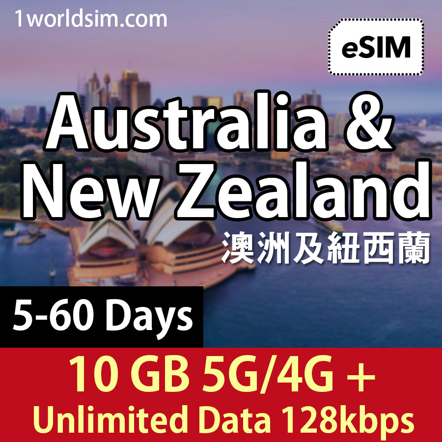 【澳洲及紐西蘭旅遊eSIM】3GB-60GB 高速流量+無限數據